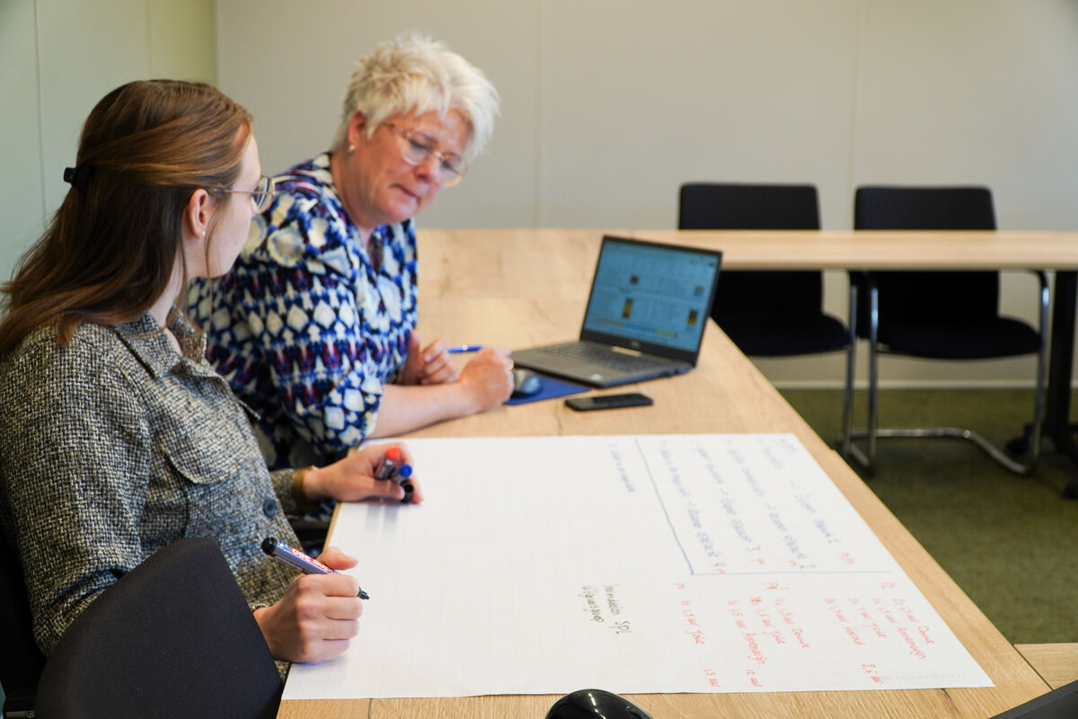 De praktische uitwerkingen volgden in de middag. Motivatie wordt – onder meer – hoger bij meer autonomie. Dus ook deze docenten werd gevraagd “Waar gaan je handen van jeuken? Wat wil je nu met elkaar aanpakken?” Zo werd er gewerkt aan “The Big Picture”; hoe ziet de hele opleiding eruit en wat is dan de plek van de verschillende lessen? Bovendien gingen de docenten op zoek naar praktische voorbeelden om lessen in de juiste context te plaatsen.
