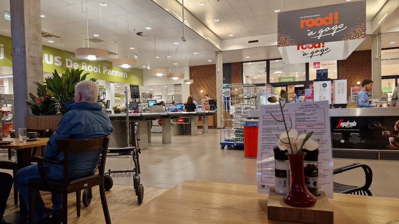 In de middag bezocht ik het winkelcentrum van De Rooi Pannen. Onder de schoollocatie is een compleet ingericht winkelcentrum met o.a. een supermarkt, lunchzaak, boekhandel, drogisterij, en online-winkelservice. Wat een fantastische leeromgeving! Hier passen onze contextvrije Beroepsmodules perfect bij; leren in de context van een bestaand bedrijf.