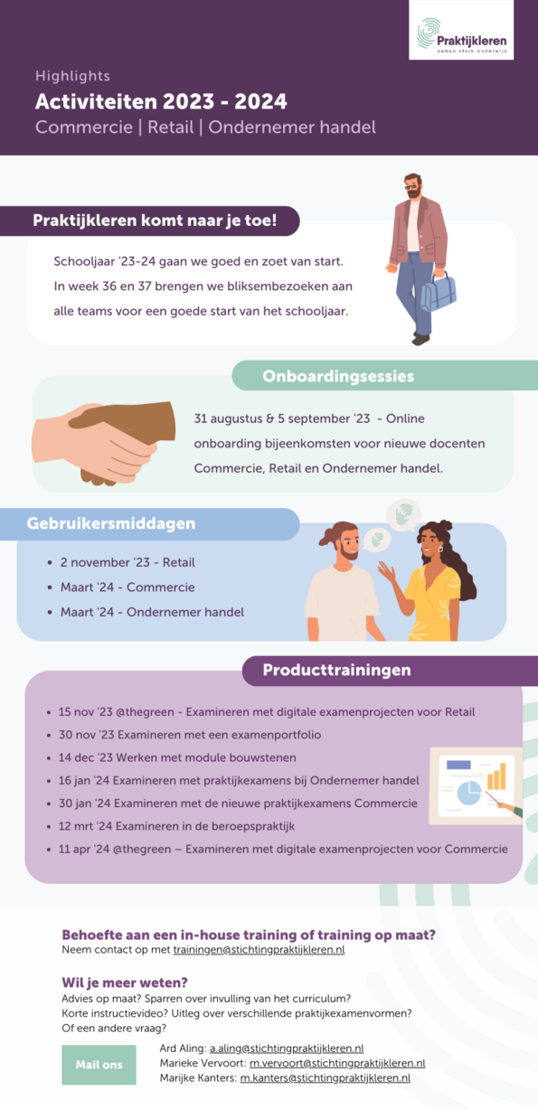 Wat kan je komend schooljaar van ons verwachten? Tijd om alvast vooruit te kijken naar schooljaar 2023-2024. In deze flyer vind je een overzicht van onze activiteiten en de highlights van leermiddelen en examens. Download de flyer via de button hieronder. Of scroll snel verder om hem te bekijken.