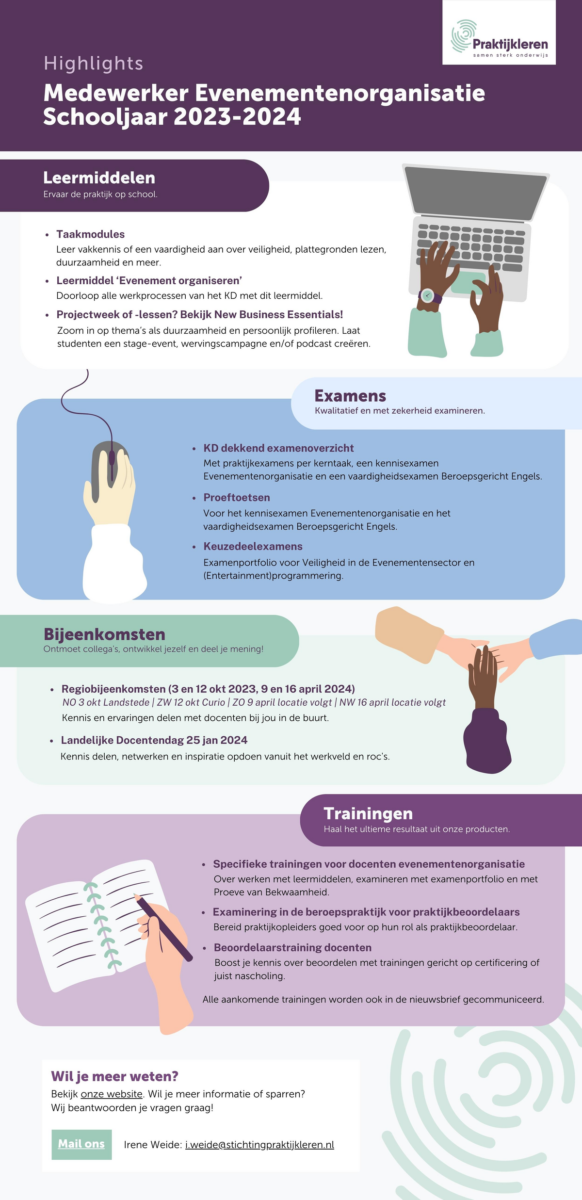 Wat kan je komend schooljaar van ons verwachten? Tijd om alvast vooruit te kijken naar schooljaar 2023-2024. In deze flyer vind je een overzicht van onze activiteiten en de highlights van leermiddelen en examens. Download de flyer via de button hieronder. Of scroll snel verder om hem te bekijken.