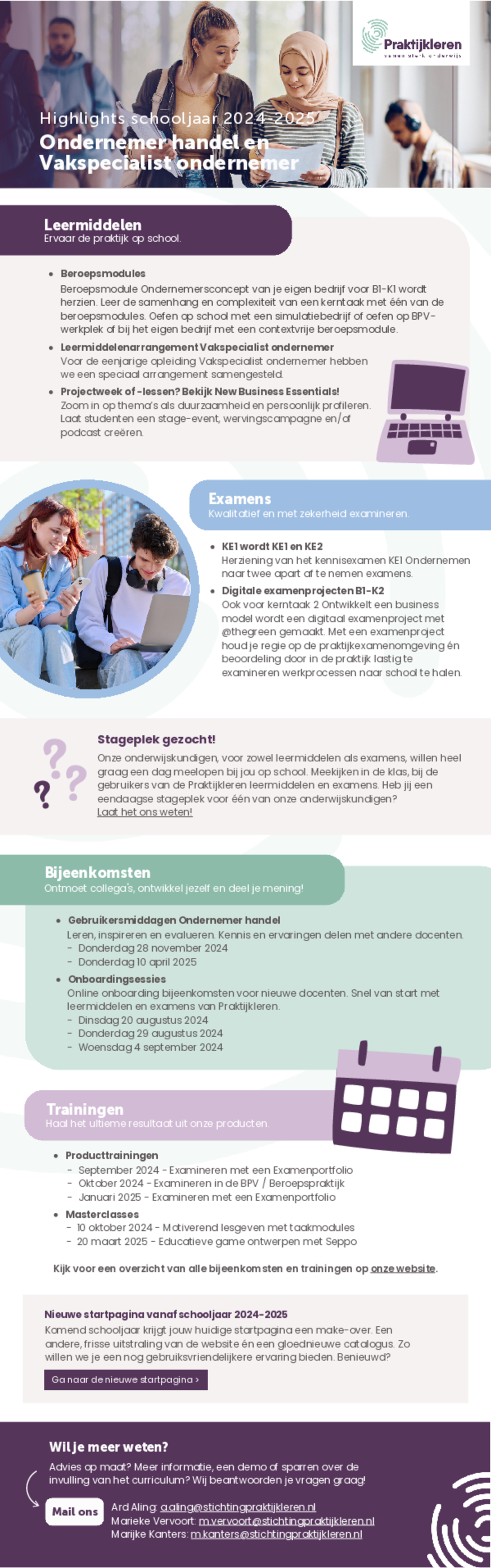 In de infographic vind je de data van gebruikersmiddagen, masterclasses en trainingen, alsook de highlights van nieuwe leermiddelen en examens.