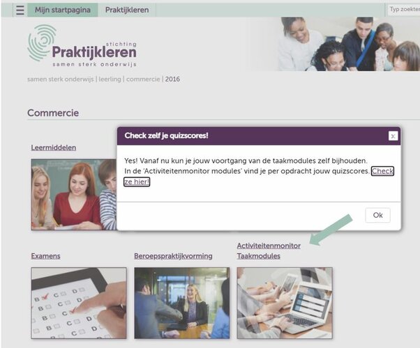 Ook studenten kunnen nu hun resultaten inzien. De ‘Studentenmonitor modules’ vinden ze op dezelfde pagina waar de link naar de monitor staat.