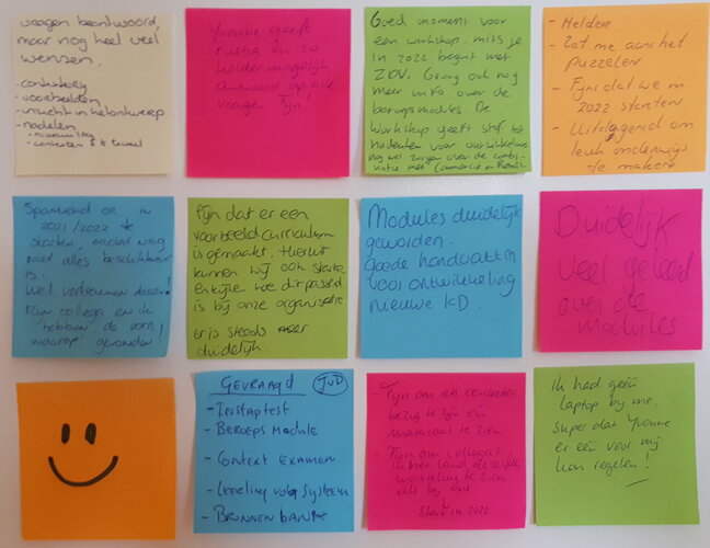 Na een korte uitleg over de uitgangspunten, en een verkenning van de verschillende tools om een curriculum samen te stellen, onderzochten de deelnemers de gepubliceerde modules. Bijna de helft van de deelnemers van deze serie workshop werkt op een roc die in ‘21- '22 gaat starten met het nieuwe kwalificatiedossier. De andere deelnemers wilden goed voorbereid zijn om de eerste stappen met hun team maken om plannen te maken voor het kd in augustus 2021.